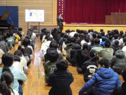 終業式後、生徒指導の先生から冬休みのお話がありました。
