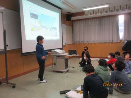 総合的な学習の時間では、「西田地方のたからものを見つけよう」をテーマに意欲的に調べ学習に取り組みました。調べたことをクイズ形式に伝え合いました。