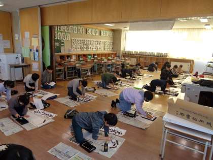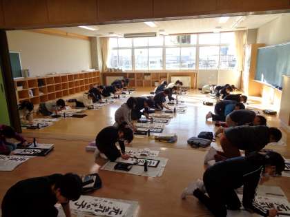 3学期がスタートしました。冬休み期間の練習の成果を十分に発揮しようと集中して書き初めに臨んでいました。