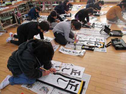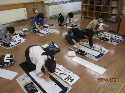 始業式の後は、教室で書き初め大会が行われました。気持ちを集中して、真剣に取り組みました。冬休みの練習の成果を出し切りすっきりした様子だったり、もっと満足のいく作品にしたかったと少し悔しそうな表情だったりする子供たちでした。