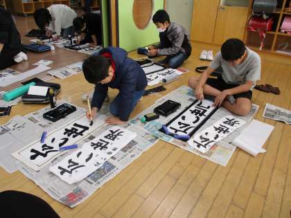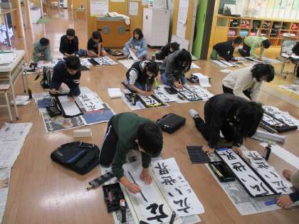 学校では書き初め大会がありました。子供たちは、時間いっぱい丁寧に真剣に取り組んでいました。冬休み中の練習の成果を出すことができていたようでした。