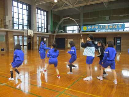 3学期に入り寒い日が続いていますが、寒さに負けずに子供たちは身体を動かしています。今日はウォーミングアップとして長縄をしました。久しぶりの長縄だったので、子供たちは「連続で跳べるかな」と心配そうにしていましたが、続けるうちに「頑張れ!」「すごい」と友達に声援を送りながら、熱中して跳んでいました。