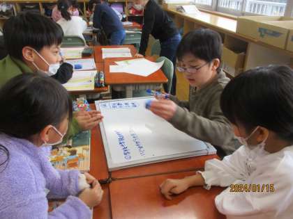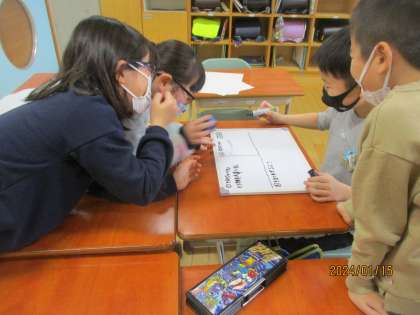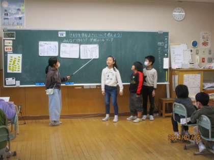 道徳科では学級のルールブックを考えました。学校や学校にはどんなきまりがあるか、そのきまりは何のためにあるのか、きまりのよさの3つの視点でグループで話合いました。友達の意見に共感したり、頷いたりして伝え合っていました。
