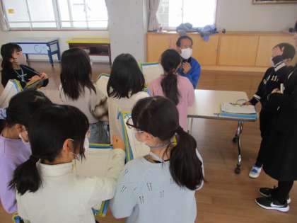 総合的な学習の時間では、ゲストティーチャーとして、地域に詳しい方々を学校にお招きし、気になっていることを質問しました。見守り隊や消防団についてや、この地域のよいところはどんなところか・・・など、たくさんの質問に応えていただきました。インタビュー後は、「初めて知ったことがあったよ」「楽しかった」と充実した時間になったようです。