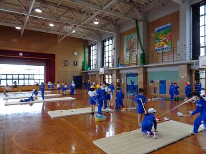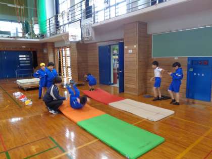 友達と互いに技の出来具合をチェックしたり、ポイントを確認したりするなど、より美しくできるように一生懸命取り組んでいます。