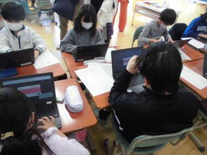 3年生は、理科の「じしゃくにつく物調べ」の学習をしました。電気を通す物の結果をふまえて、じしゃくにつく物は何か予想をしました。そして、いろいろな物にじしゃくをつける実験を行いました。「がびょうはつくかな」「ロッカーはどうだろう」。その後、気付いたこと、もっと調べてみたいことなどをパソコンに入力をして振り返りをしました。