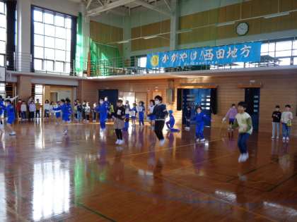 運動委員会が企画した縄跳び大会がありました。前跳び、後ろ跳び、あや跳び、二重跳びの4つの種目が行われ、一生懸命跳んでいました。