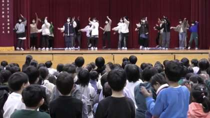 6年1組・2組それぞれで、ダンスを披露しました。子供たちの発案、振り付けによるものですが、小学校最後の発表ということもあって、担任も参加して一緒に踊りました。会場は大盛り上がりで、西っ子みんなを笑顔にすることができました。