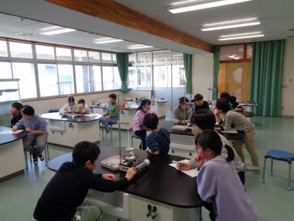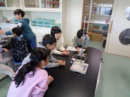 水のすがたの変化について学習しています。実験器具を正しく使い、温度が何度の時に変化が見られるのか調べています。