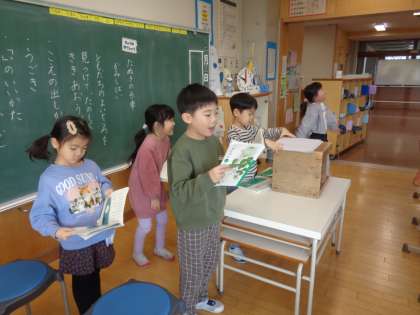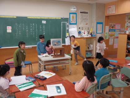どのグループも、紙芝居から飛び出した登場人物になりきって自然に動きを入れ、楽しく発表することができました。