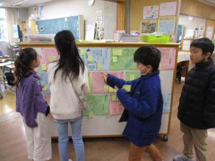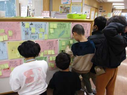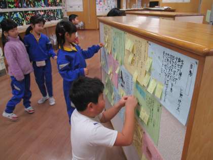 これまでの生活から心が揺さぶられた場面や印象に残った出来事等を振り返り、リズムや表現の仕方等を自分なりに工夫して書きました。出来上がった詩を読み合い、友達の詩のよさを伝え合った後には、子供たちの中から「もっと書きたい」「まだまだ詩の勉強をしたい」という声がたくさん上がり、自分の思いを詩に書き表す楽しさを感じ取れた様子でした。