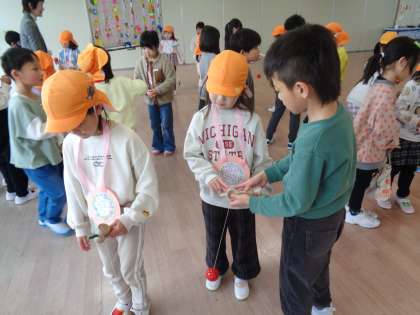 1年生が遊び方を教えると、初めてできた年長さんがいたそうです。