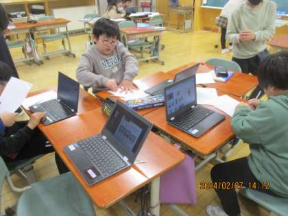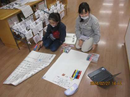 「西田地方のたからもの」の学習も終盤です。自分たちが調べたことから考えたことなどを様々な人に伝えようとまとめています。パソコンや大きな紙に表しています。発表の仕方や、掲示場所についても考えながら活動に取り組んでいます。