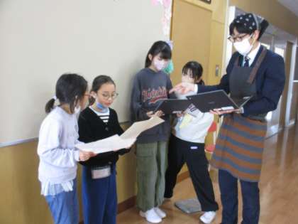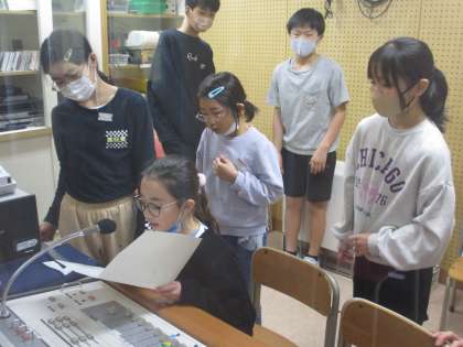 卒業お祝いプロジェクトでのお祝い放送をしました。各学級の代表は、6年生との思い出で心に残っていることを話し、これまでの感謝を伝えました。代表児童は緊張した面持ちでしたが、何回も一生懸命練習した成果を発揮して思いを伝えることができました。