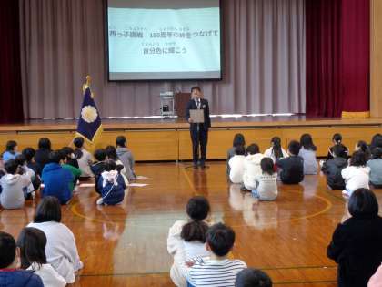 児童会の運営が6年生から5年生に引き継がれました。4年生も来年度から高学年として、学校をリードする立場となります。式の様子を真剣に見て、6年生や5年生の姿を参考にしようとしていました。