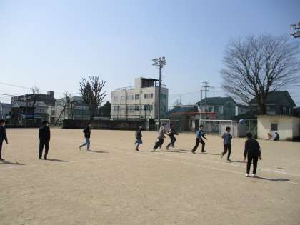 続く3時間目には、お世話になった学校に感謝をこめて、グラウンドや玄関を掃除しました。きれいにした後は、慣れ親しんだグラウンドで遊ぶ最後の時間をとりました。