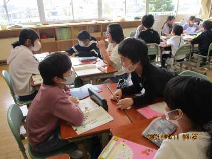 国語科「力を合わせてばらばらに」の学習では、活動を楽しみながら、友達の話をよく聞いて予想したり、自分が思い浮かべたものの特徴を話したりして、グループで協力して学習しました。