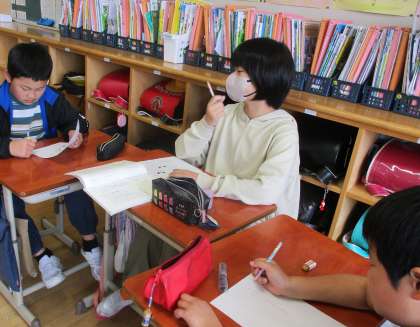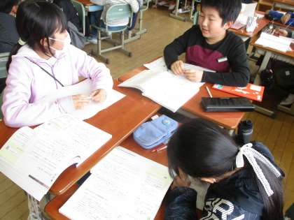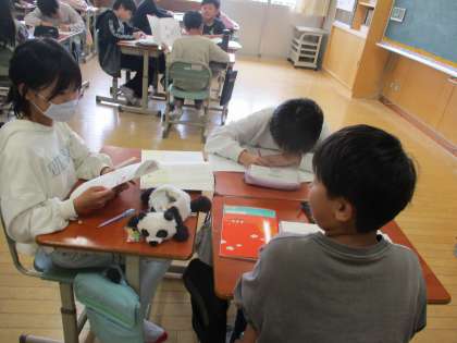 国語の学習で友達のよさを引き出すインタビューをしました。5年生になって1ヶ月、友達の得意なことや好きなことについて詳しく知らないことに気付いた子供たちは、話し手・きき手・記録者に分かれて聞き合いをしました。意外な返答を聞いて驚いたり、同じきっかけでスポーツを始めた友達がいることに気付いたりと、友達の新しい一面に気付く時間となりました。