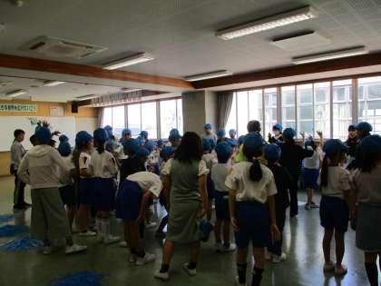 学校全体の応援練習も3回目となりました。ダンスや掛け声を覚えるだけでなく、ポーズをそろえたり、応援の隊形を確認したりなど、細かい部分にも少しずつ目を向けて練習しています。