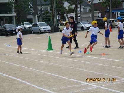 いよいよ、運動会が近付いてきました。今日の予行練習では、どの子供たちも真剣に競技に取り組み、大きな声で応援をしていました。暑い中でしたが、頑張りました!本番へ向けて、気合いが入っていました。