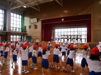 運動会が近付いてきました。子供たちは体を大きく動かして、ダンスを元気に踊っています。