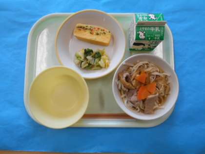 5月16日の給食 公開日 2024/05/16 更新日 2024/05/16 学校行事 今日のメニューは、なめし、ぎゅうにゅう、ちぐさやき、おひたし、かやくうどんです。子供たちに大人気のかやくうどんでした。