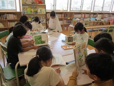 生活科で自分の育てている野菜について、その育て方をもっと詳しく知ろうと、本やインターネットを使って調べました。同じ野菜を育てている友達と一緒に、分かったことを確認する姿も見られました。