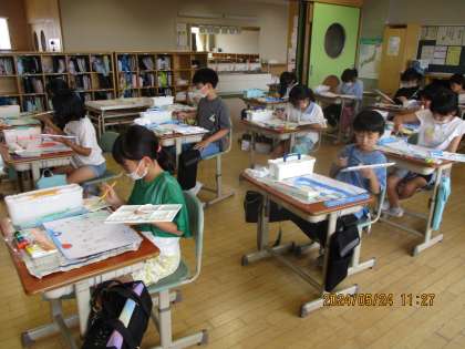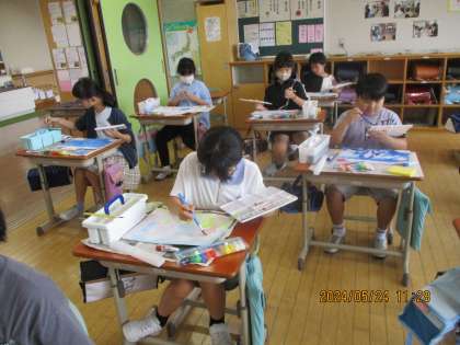 久しぶりに水彩セットを使い、「未来の富山市」をテーマに描きました。未来の富山市がこんなふうになっていたらいいなという思いを込めました。