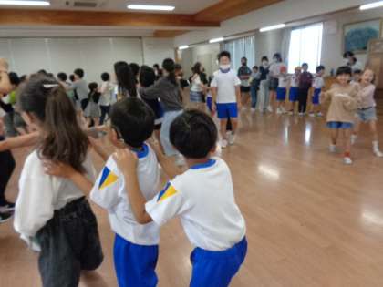 いきいきタイムに、集会委員会主催の「みんながスマイルレク」という自由参加のミニ集会が行われました。集まった子供たちで「じゃんけん列車」を行いました。学年の壁を越えて出会った人とじゃんけんをする度に長い列車になり、みんながスマイルになっていました。