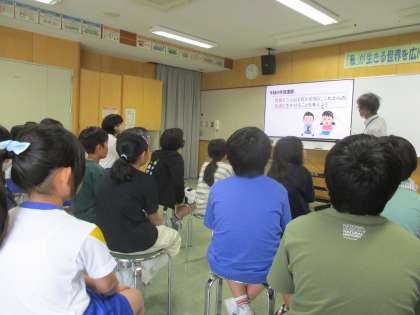 情報モラル講座がありました。普段から使うことの多いインターネットですが、便利な反面、危険な面があるという「光と影」の話を聞きました。自分についての情報は少しでもネット上に載せないこと、画面の向こうにはどんな人がいるか分からないため自分の身は自分で守らなくてはいけないこと等を確認しました。便利なインターネットを安全に利用できるようになってほしいと思います。