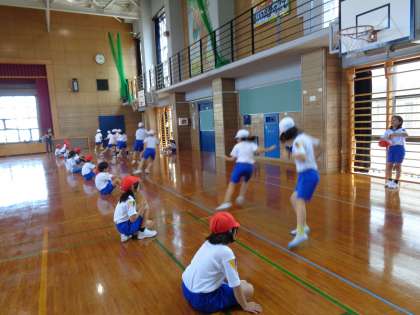 スポーツテストが行われています。シャトルラン、上体起こしなど各種目の練習を行っています。今日は、反復横跳びです。はやく動くためにはどうしたらよいか、考えながら記録に挑戦していました。