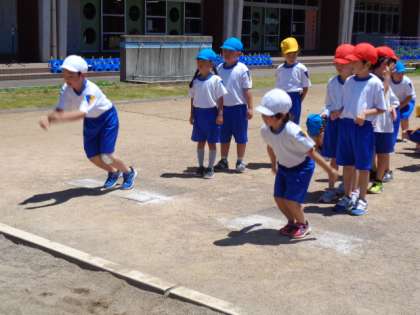 〜1年生〜体育科の学習「立ち幅跳びとボール投げ」