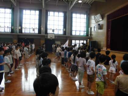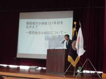 前日の今日は創校記念式を行いました。校旗と創校150周年の旗が入場し、校長先生からは西田地方を流れる川のお話がありました。「明日は西田地方小学校の誕生日です。これまでの地域の方々の思いを受け継いでがんばっていきましょう」という言葉に「はい!」と元気よく返事をするすてきな西っ子です。