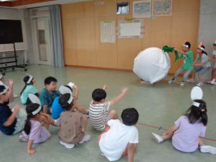 音読劇の発表会をしました。どのグループも、「うんとこしょ、どっこいしょ」の言葉を力を込めて言ったり、抜けたときの喜びを表現したりと、登場人物になりきっていました。また、音読劇を互いに見合った感想でも、友達の上手なところを伝え合いました。