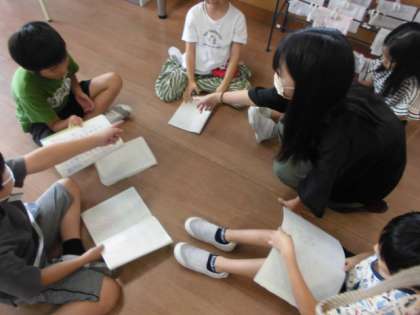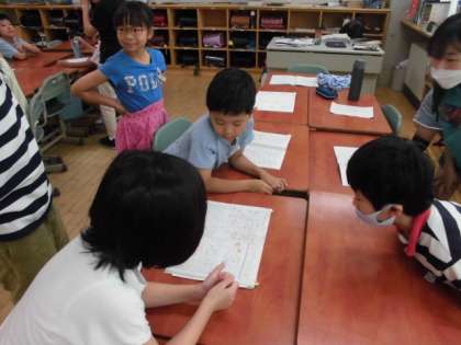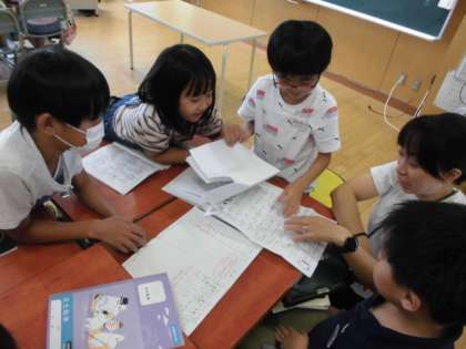 縦割りのグループで自学の取組を紹介し合いました。それぞれのがんばりを学年を越えて認め合い、「今度はこれをやってみよう!」と興味をもつきっかけになったようです。