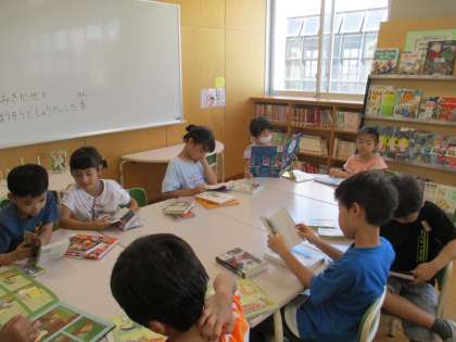夏休みに読む本を借りました。2年生は6月に市立図書館に行ったので、「夏休みになったらキラリに本を借りに行くよ」と言っている子供もいました。