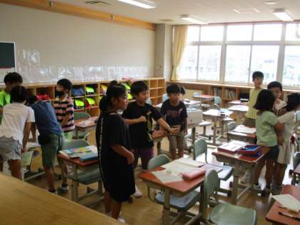 始業式の後、各クラスで学級活動が行われました。自由研究を見合ったり、夏の思い出を話したりと久しぶりに会う友達や先生との時間を楽しみました。