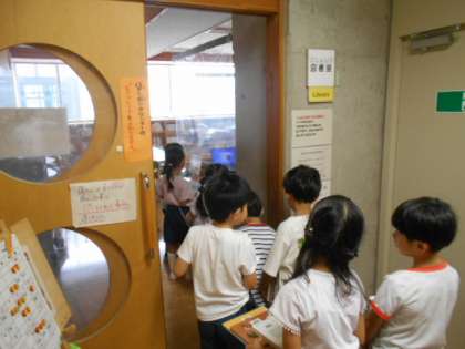 1年生が夏休み中に借りていた本を図書室に返していました。本の世界を楽しんだことでしょう。