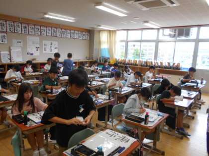 書写の時間、「飛行」という字を書いていました。字のバランスに気をつけて、丁寧に書いていました。