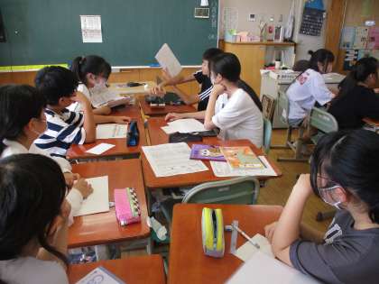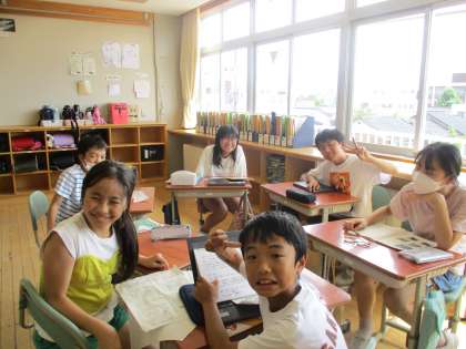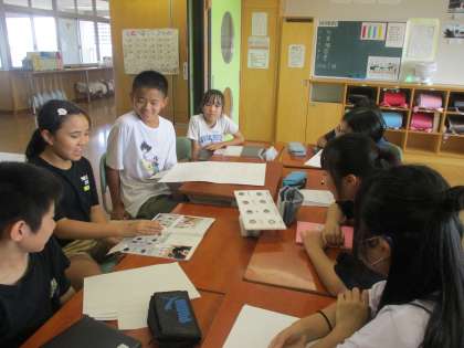 夏休みにまとめた自由研究の発表を聴き合いました。友達の発表を熱心に聴いたり、楽しそうに語り合ったりする姿が見られました。
