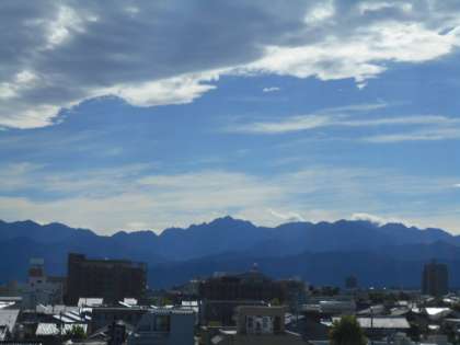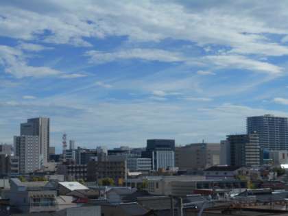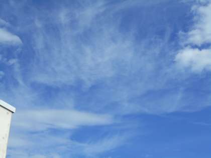 台風の影響でしょうか、日頃あまり吹かない南東方向から、風が吹いていました。空にはすじ状の雲も見られます。これ以上、台風の被害が起こらないことを願います。