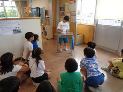 夏休みに、取り組んだ「自由研究」。調べたことを紙やノートにまとめたもの、細かいところまでていねいに作り上げた作品などを、みんなの前で発表しました。「すごいね」「どうなってるの」など、みんなの作り上げたものに、拍手が沸き起こりました。