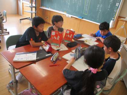 国語科では話す・聞く、対話の練習で、海と山のどちらをおすすめするか意見を述べ合いました。海・山をおすすめする理由をよく考えるなど、準備をして話し合いをしました。意見を述べ合う時間には、互いの意見の違いを明確したり、自分の好みではなく事実を話したりして、説得力のある話し方をしようと頑張っていました。