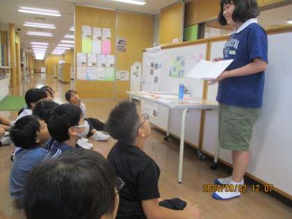 夏休みに頑張った自由研究を発表し合いました。みんな、真剣に聞いていました。