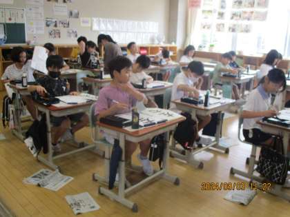 2学期になって、初めの書写の時間です。とめ、はらいに気を付けながら落ち着いて書きました。