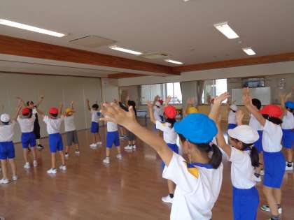体育の時間にダンスをしています。簡単なステップからスタートとしましたが、少しずつ難易度をアップ。「えー分からない」「どうしたらできるかな」と、いいながらも楽しくダンスをしています。