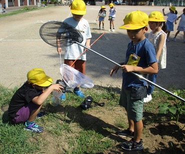 生活科の学習で、校庭にいるアリやバッタ、トンボ等を捕まえて観察したり、それらのすみかや成虫の特徴を調べたりしました。なかには、バッタの種類を詳しく知って見分けることができる子供もいて、ますます身近な生き物に関心をもっていました。