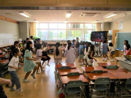 子供たちは学習発表会のダンスの練習をがんばっています。休み時間になると、3年1組に集まり、自分たちで声を掛け合ってダンスを始めています。何度も繰り返し練習をし、ダンスを始めてか1週間でマスターし始めています。ただ踊るだけでなく、楽しみながら踊っている姿が素敵です。