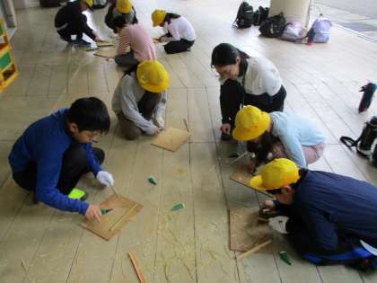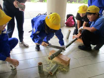 2日目の野外炊飯で使用する箸と食器を作りました。