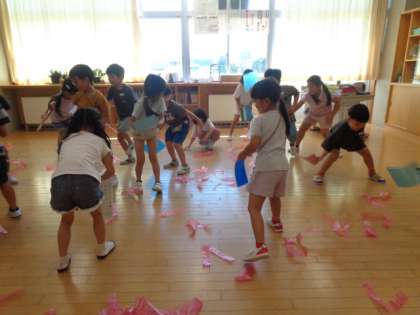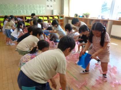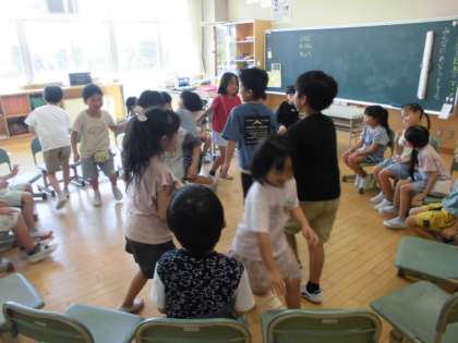 1組ではゴミ飛ばしゲーム、2組ではフルーツバスケットをしました。毎週係活動や様々なゲームを楽しみながら、学級の時間を使って体験を積み重ねたり、みんなでチャレンジしたりしています。